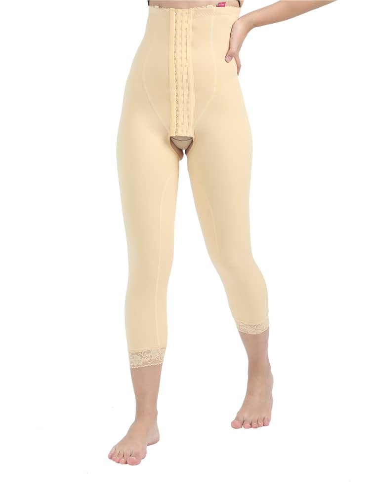 • Adjustable front fastening with three rows of hook and eye to increase compression as swelling subsides.