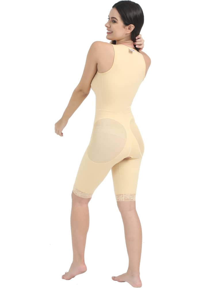 • The abdomen area and outer part of the thigh is reinforced with a double lining fabric for optimal compression.