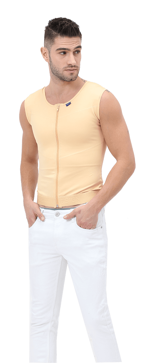 • The compression garment ends at the waist with a wide elastic band to prevent the garment from chaffing or rolling up.